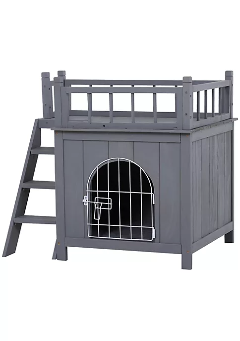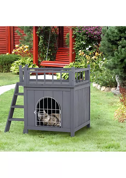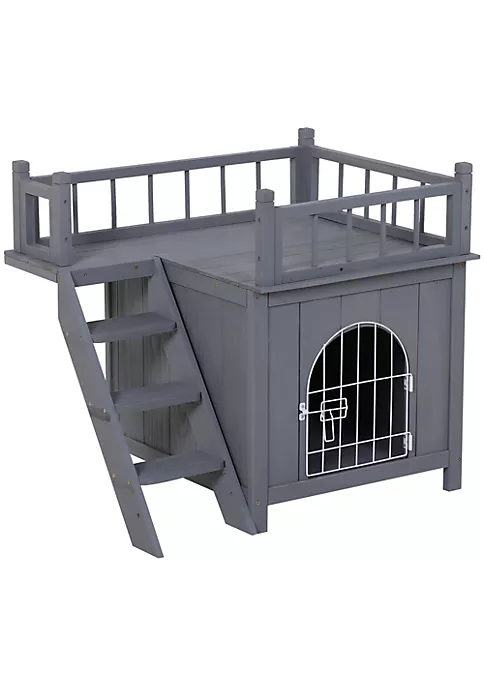 – Includes indoor lounge with closable gate, climbable stairs, and a rooftop balcony with railing