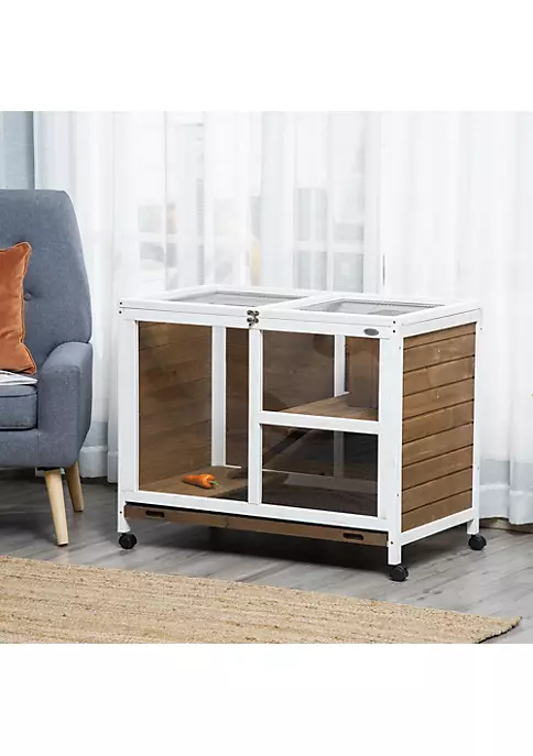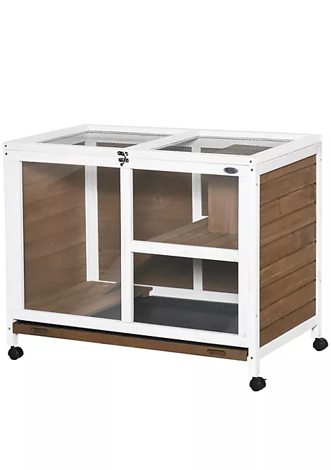 – Feeding your pet and cleaning the bunny home is simple with the easy-open latch on top and a pull-out tray at the bottom.