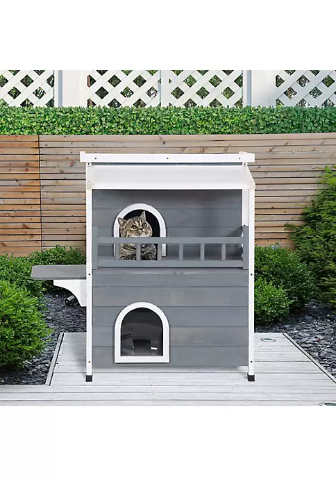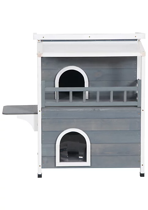 – Multiple entry points with two doors, a jump platform, and a floor hole in the pet condo;