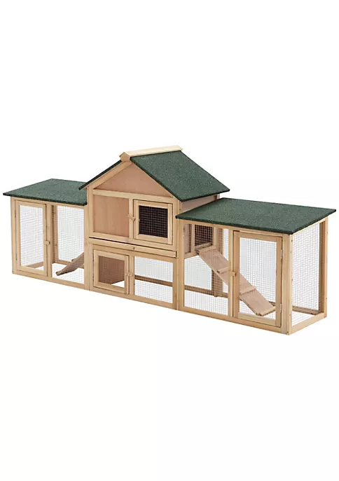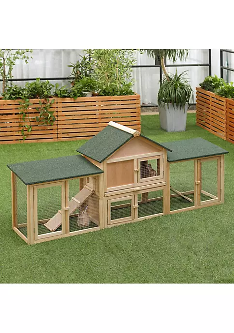– Material: Fir Wood; – Color: Natural; – Net Weight: 39.6lbs – Overall Dimension: 82.75″ L x 18″ W x 33.25″ H; – Run Box Dimension (each side): 28″ L x 17″ W x 22.5″ H; – Living House Dimension: 30″ L x 17.75″ W x 33″ H; – Living House Door Size: 10.75″ W x 8.75″ H; – Run Box Door Size: 11″ W x 17.75″ H, 10.75″ W x 8.75″ H (cm); – Internal Door Size: 6.75″ W x 8″ H; – Ramp Size: 20″ L x 6″ W; – Slide-Out Tray Size: 13.5″ L x 25.5″ W; – Item Label: D51-103
