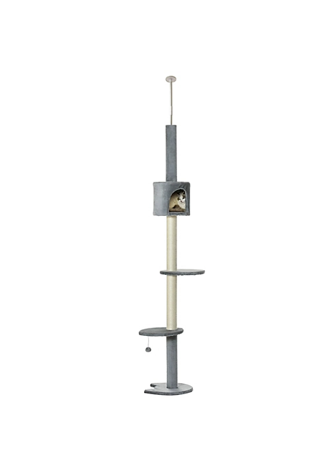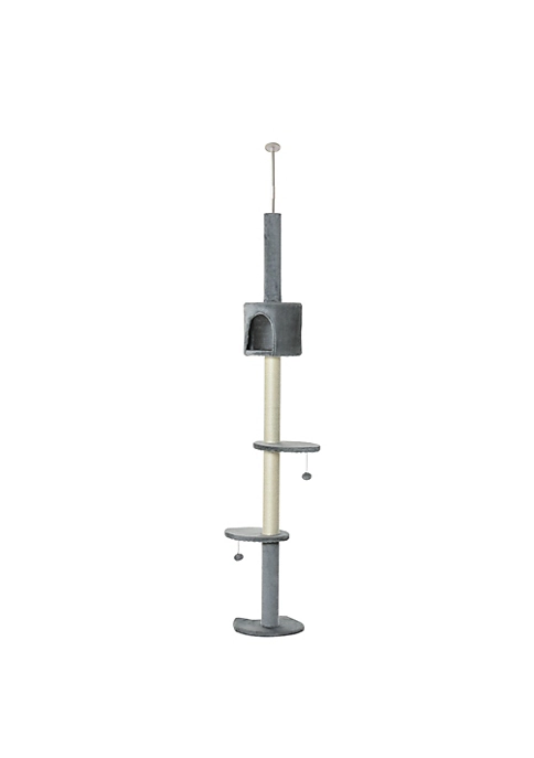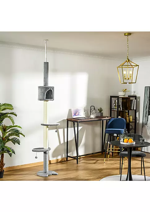– This floor-to-ceiling cat tree ranges in height from 85.5″H; – It can be secured to the ceiling using the included tension rod; – The anti-tipping fittings included for more security; – 4-tier cat tree includes scratching posts and cat toys; – Scratching posts sharpen your cat’s claws and protect your furniture; – Solid particleboard construction keeps the whole cat tree secure and stable; – Giving a good place for cats to play and rest; – Assembly required;