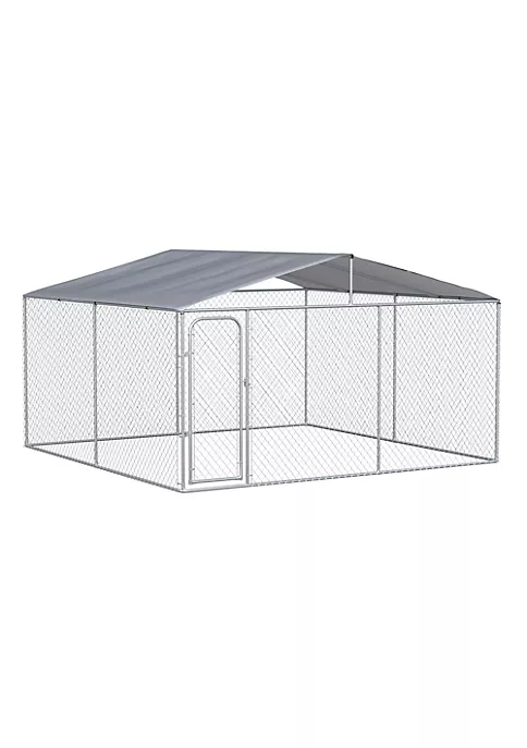 – The enclosed dog kennel offers ample room for your pet to exercise and play; – Solid galvanized for a stable structure ready for daily use; – Canopy top offers protection from the rain and sun; – This metal chain link dog fence includes a lockable door for convenient access and extra security; – Suitable for dogs, rabbits, ducks, chickens and other similar sized pets; NOTE: The product is large and relatively heavy, so it is recommended that 2-3 people install it.
