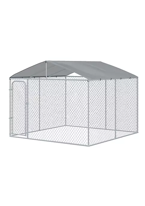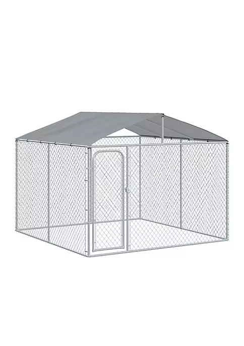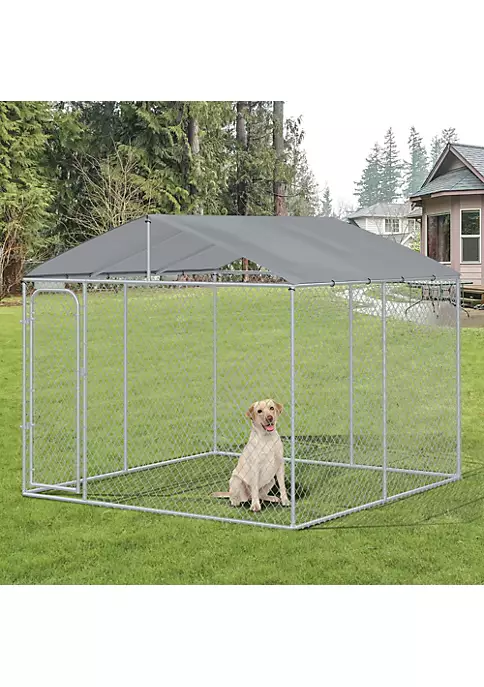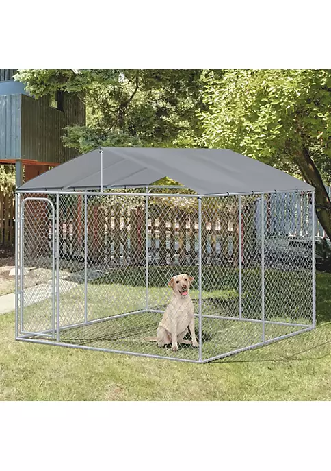 – The enclosed dog kennel offers ample room for your pet to exercise and play; – Solid galvanized for a stable structure ready for daily use; – Canopy top offers protection from the rain and sun; – This metal chain link dog fence includes a lockable door for convenient access and extra security; – Suitable for dogs, rabbits, ducks, chicken and other similar sized pets; NOTE: The product is large and relatively heavy, so it is recommended that 2-3 people install it.