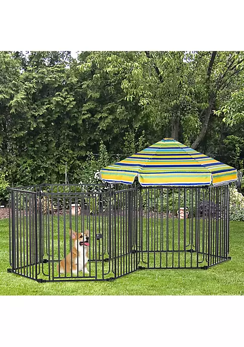 – The colorful canopy can be mounted on both sides of the kennel and adds style to your backyard.