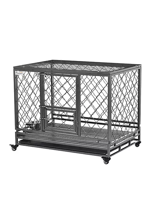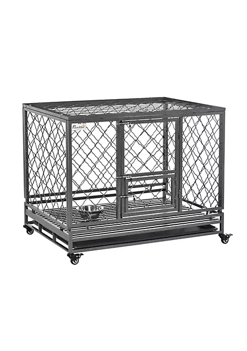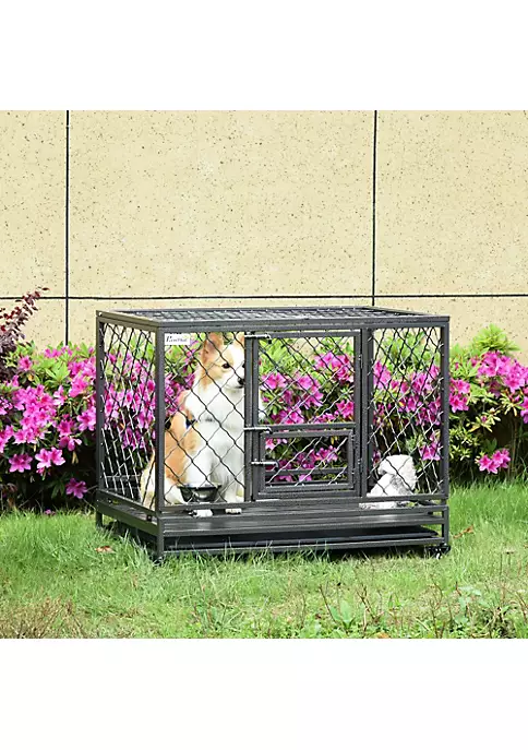– Suitable for large-sized dogs smaller than Golden Retriever, Labrador Retriever, etc.;- Made with steel gauge tubes frame and a solid steel net for a stable structure; Features two points of access: a large front door and an easy-open top; – The front door is secured with a double-bolt lock and equipped with a small door; – Crate features 1 removable bottom tray; – 4 caster wheels for easy movement, with a lock to prevent unintended movement