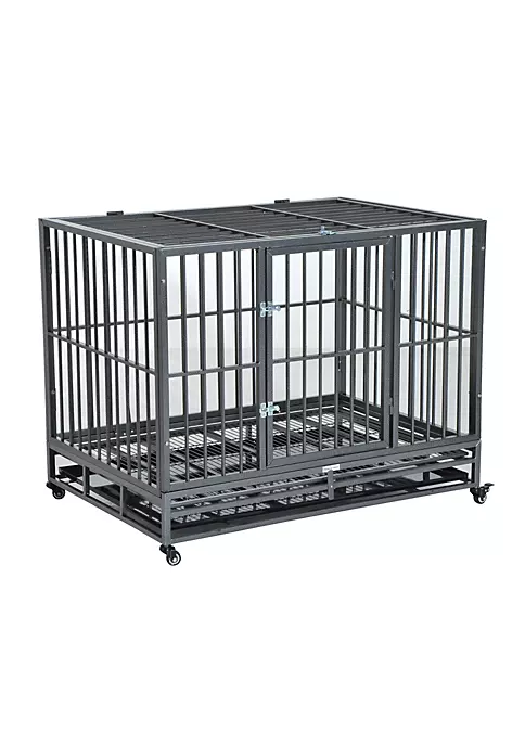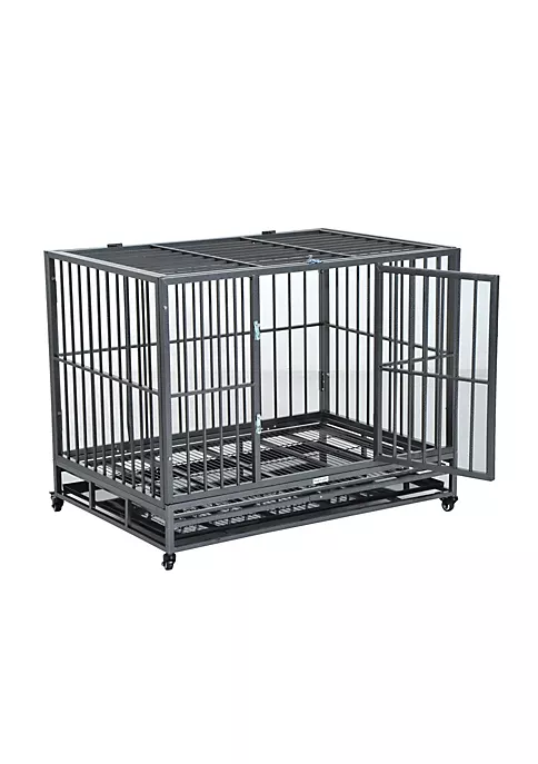 – Crate features 2 removable bottom trays: a metal pan and a floor grate