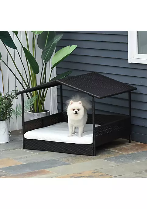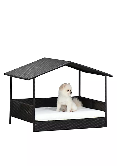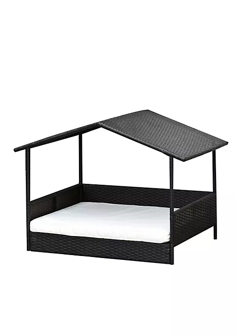 – Contemporary pet cabana design protects from weather, made with steel and PE rattan;