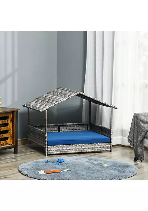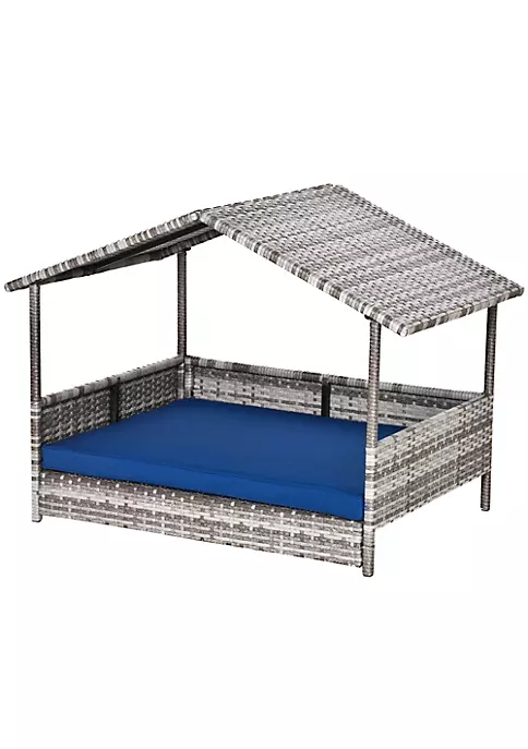 – Contemporary pet cabana design protects from weather, made with steel and PE rattan;
