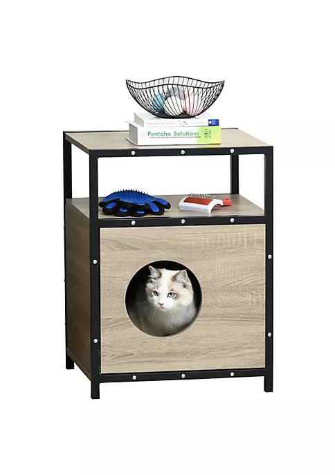 – Color: Grey; – Material: Particle Board, Metal, Flannel; – Overall Dimensions: 19″ L x 15.75″ W x 25.5″ H; – Inner Space Dimensions: 17.75″L x 14.5″ W x 15.5″ H; – Hollow Dimensions: 19″L x 15.75″ W x 6.25″ H; – Cushion Dimensions: 17.75″ L x 13″ H; – Door Size: 17.25″ L x 15″ H; – Hole Size: 7.75″; – Feet Height: 1.5″; – Suitable for the weight of cat under 12 lbs; – Assembly required; – Item Label: D30-382;