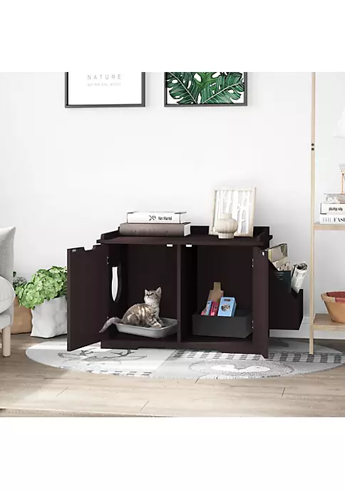 – Hinged door with magnetic lock allows you to easily insert a pet bed or litter box